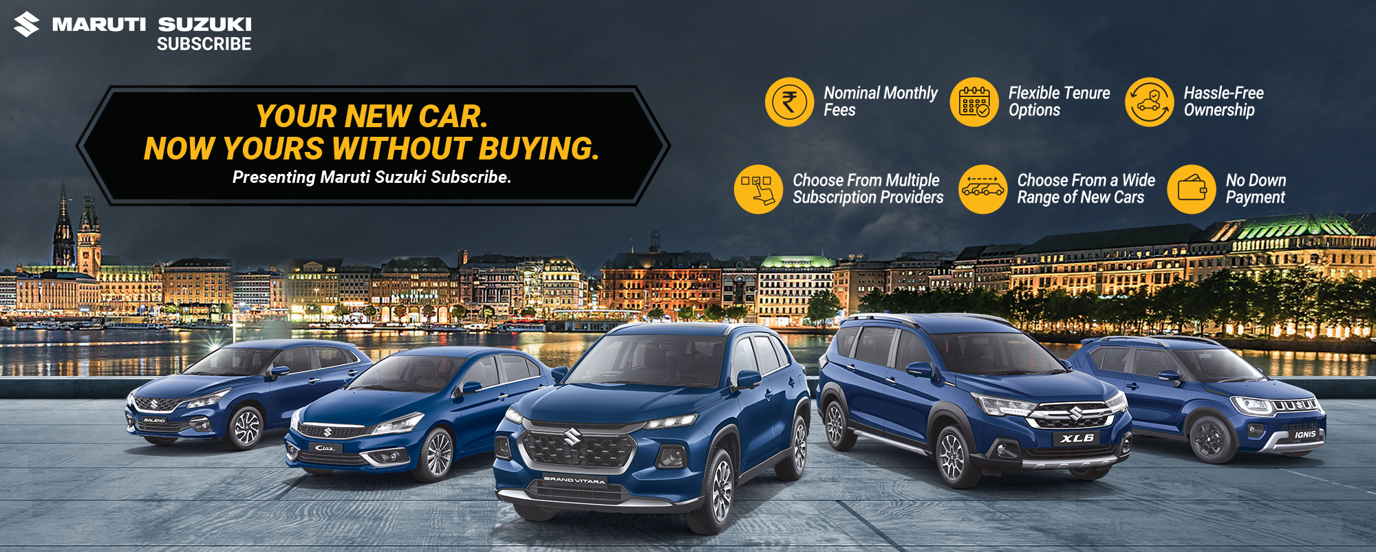 Located in Madurai, Asir offers a plethora of options of Nexa cars for Maruti Suzuki Subscribe. You can choose your desired Maruti Suzuki car and drive it home at nominal monthly fees for a variety of flexible tenure periods. Whether you prefer Hatchback, Sedan, SUV or even MUV you are sure to find it at Asir, with an easy Maruti Suzuki Subscribe plan.